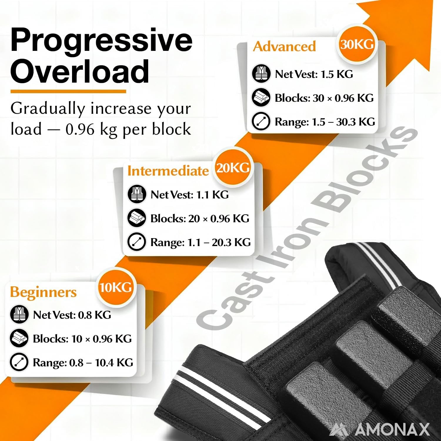 Amonax Adjustable Weighted Vest for Women and Men – 10kg / 20kg / 30kg