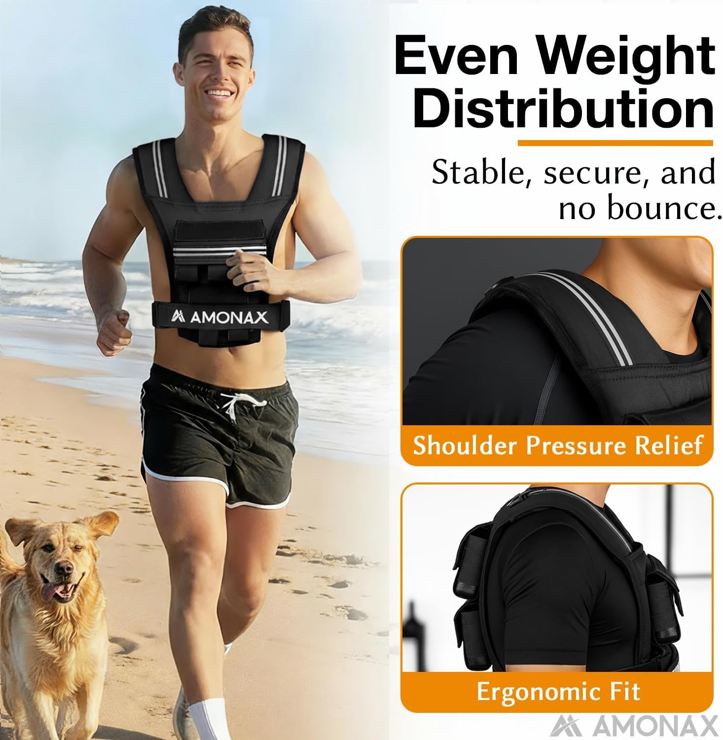 The vest comes pre-assembled and ready to use, with an ergonomic, contoured fit that stays close to the body for natural movement and improved balance. Whether you’re walking, running, training outdoors, or building strength in your home gym, the Amonax weighted vest delivers comfort, stability, and durability for every workout.