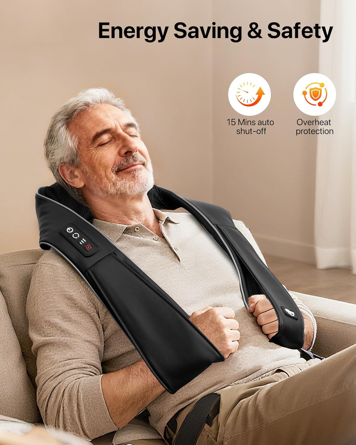 Relieve neck, shoulder, and back tension with the ALLJOY Neck Massager with Heat, designed to provide deep tissue massage and targeted comfort at home, in the office, or on the go. Featuring ergonomic design with deep tissue nodes, it helps reduce muscle stiffness, soreness, and fatigue, promoting relaxation and improved blood circulation.