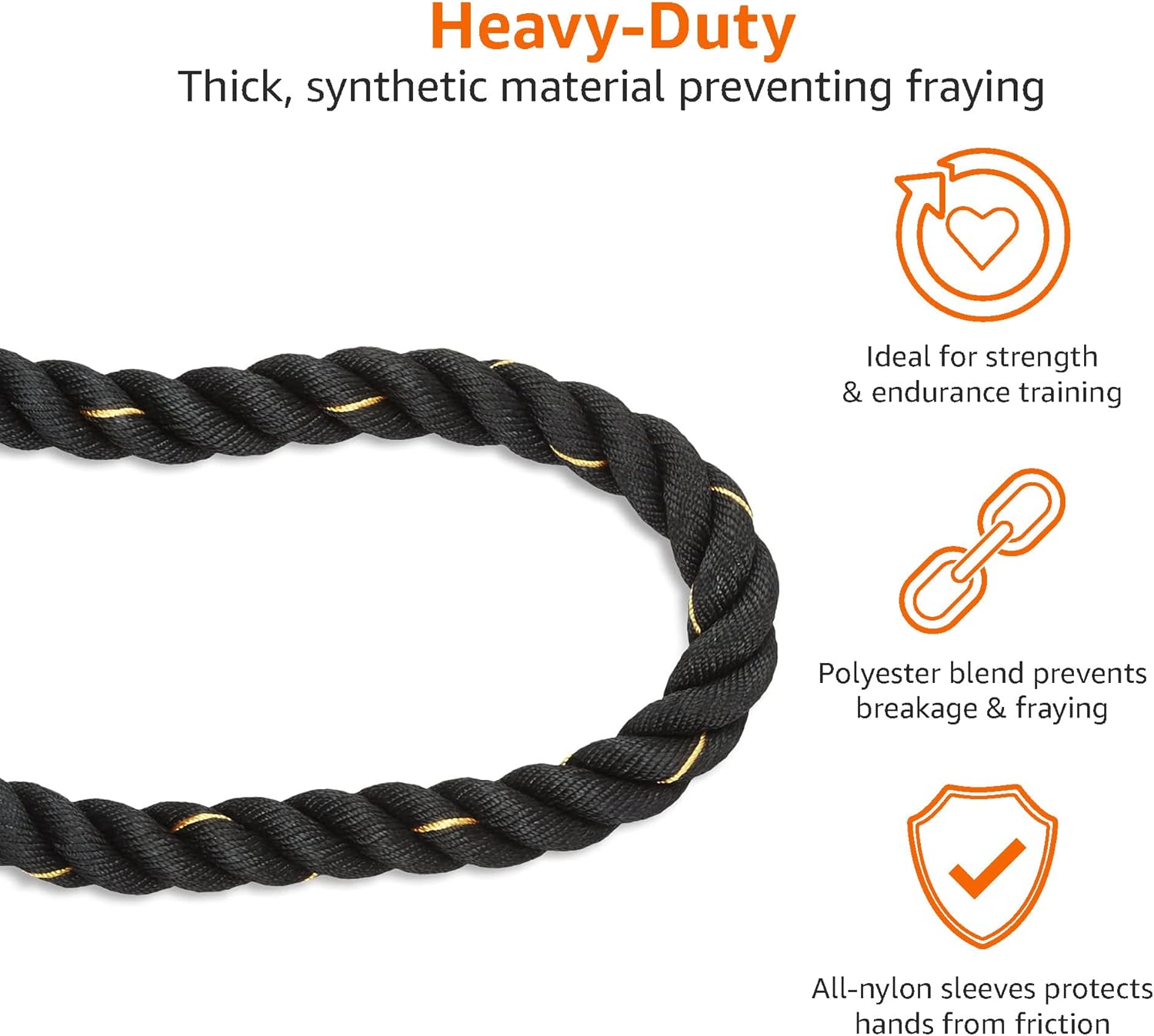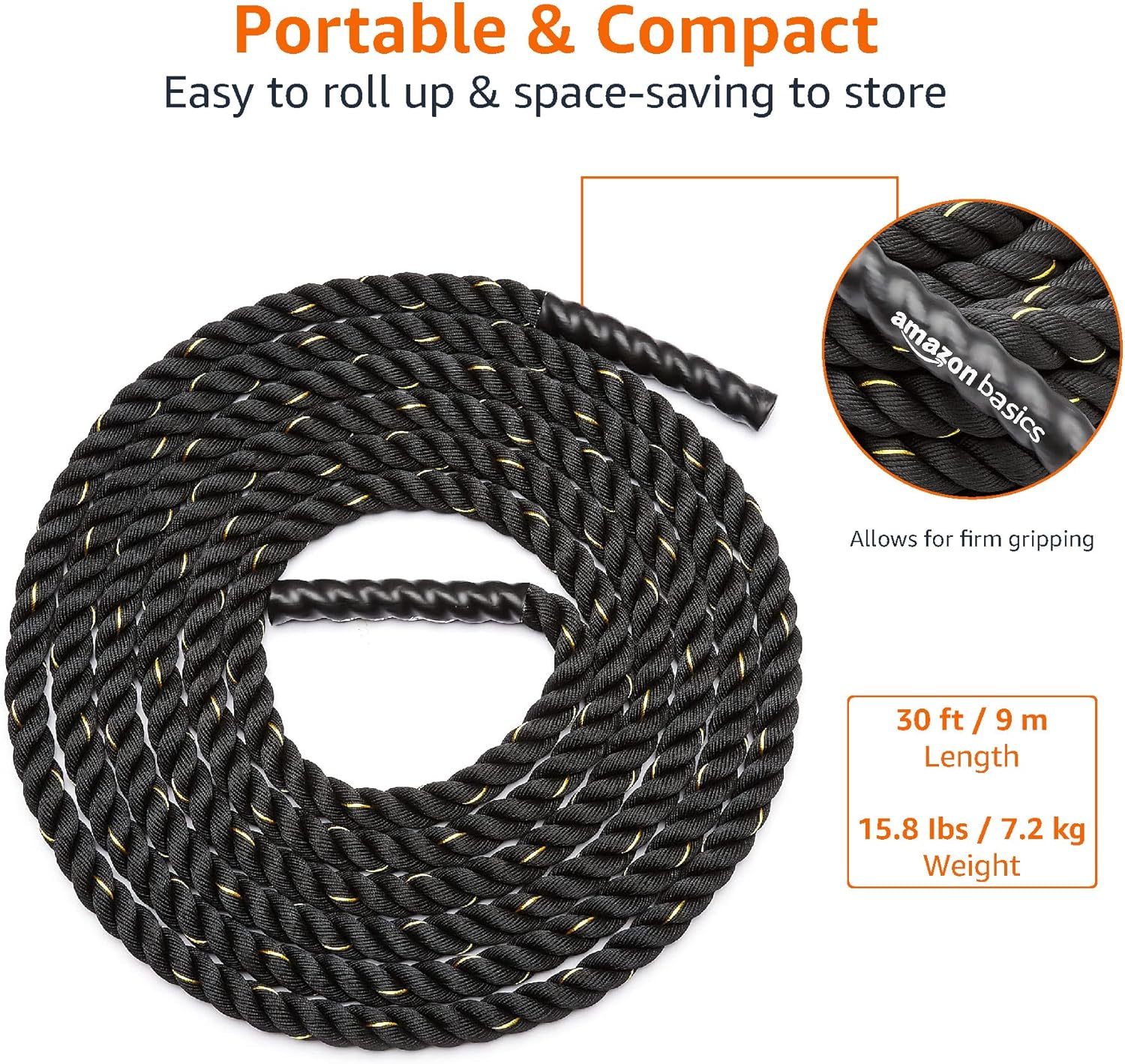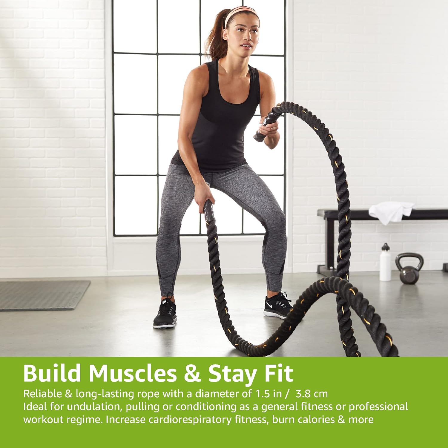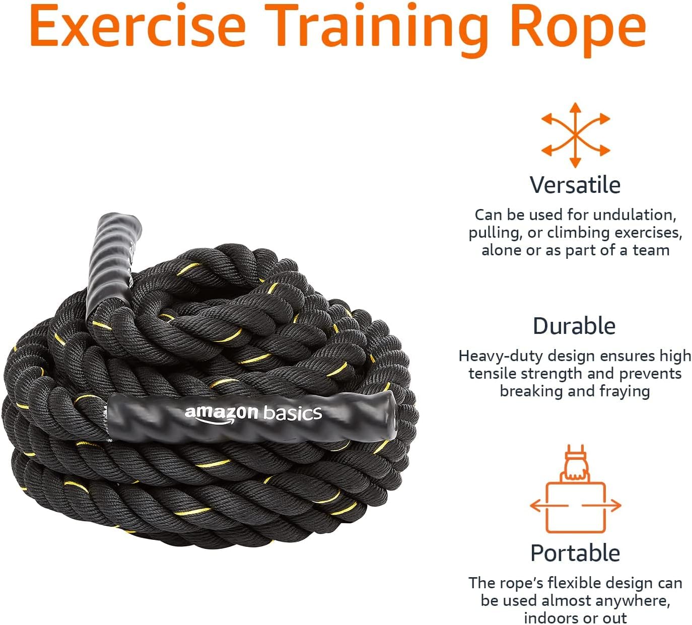 Take your strength, endurance, and full-body training to the next level with the Amazon Basics Heavy Exercise Training Workout Battle Rope, designed for safe, versatile, and effective home or gym workouts. Perfect for building upper-body strength, core stability, and cardiovascular fitness, this battle rope is ideal for high-intensity interval training (HIIT), conditioning, and functional training.