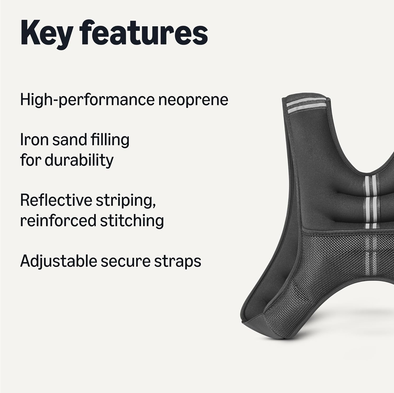 Amazon Basics Weighted Vest – 12 lb, Black with Reflective Stripe