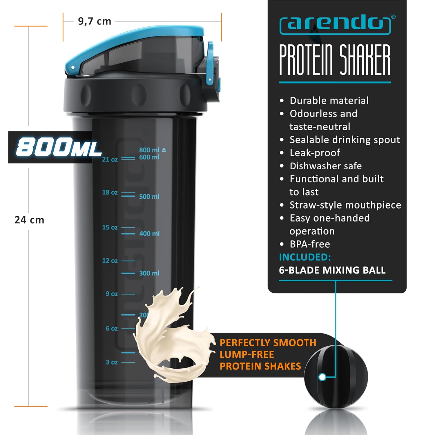 arendo Protein Shaker Bottle – 800ml (BPA-Free)