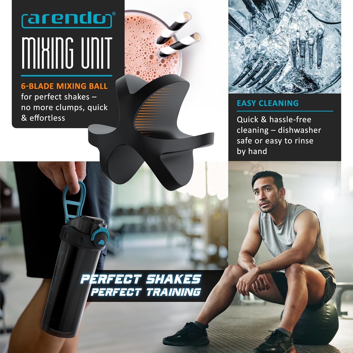 Mixes protein powder, supplements, and pre-workout drinks effortlessly