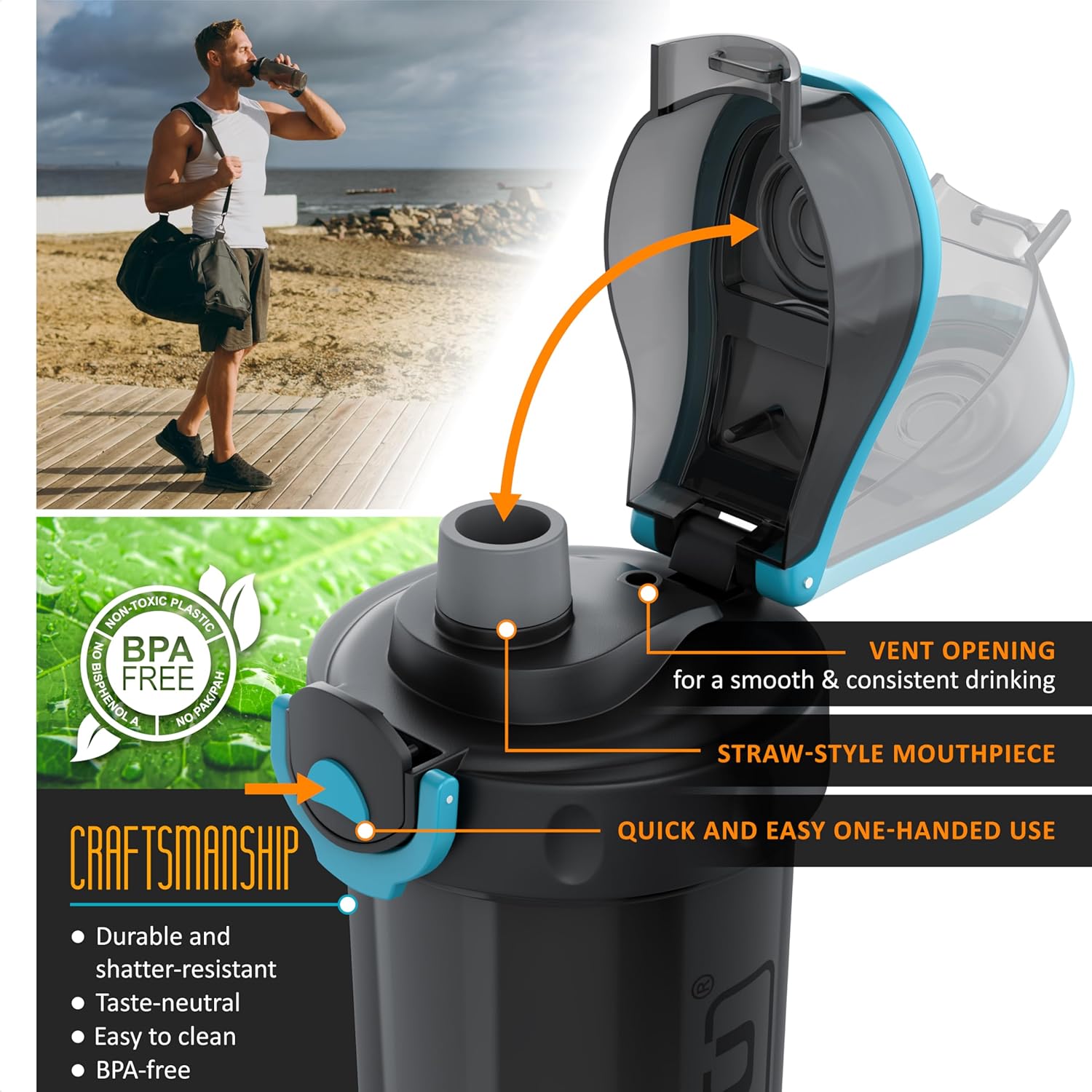 800ml Capacity – Ideal for protein shakes, pre-workout, or post-workout drinks