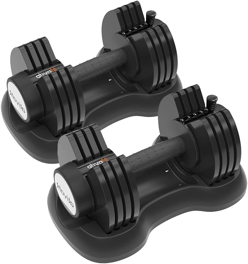 ATIVAFIT 10-in-1 Adjustable Dumbbells – Space-Saving Strength Training for Home Gym