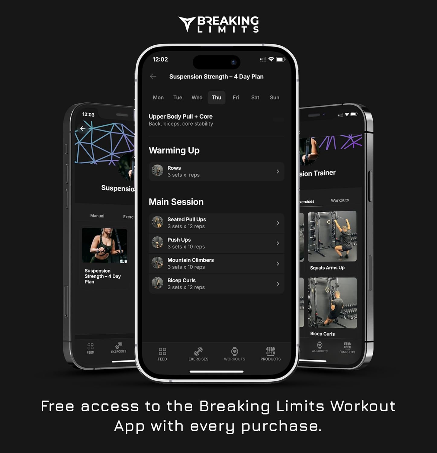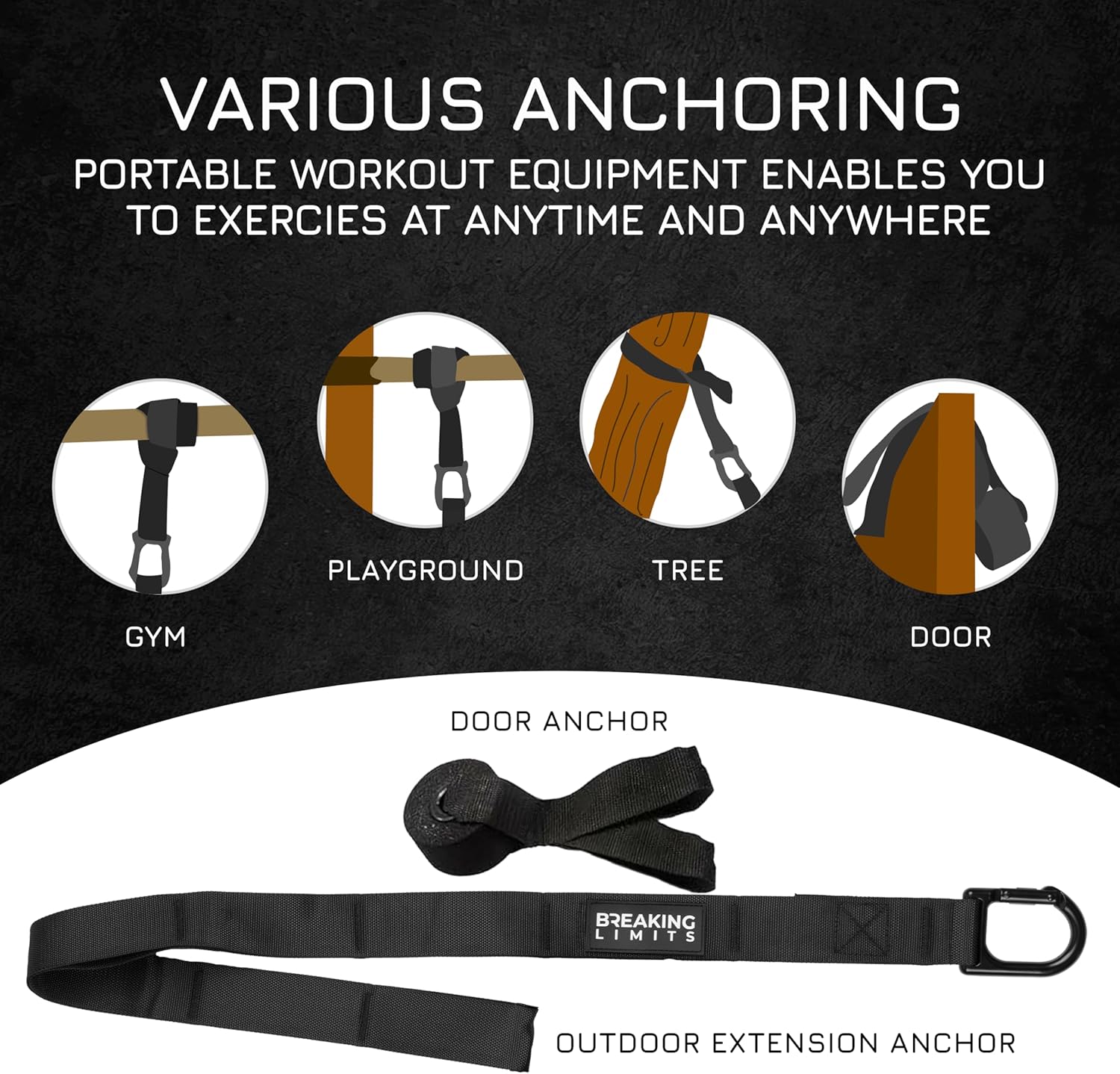 Take your home workouts to the next level with the Breaking Limits Suspension Trainer, designed for full-body strength, stability, and functional training. Perfect for men and women, this versatile suspension trainer uses body weight resistance to help you build strength, improve flexibility, and enhance core stability—all from the comfort of your home.