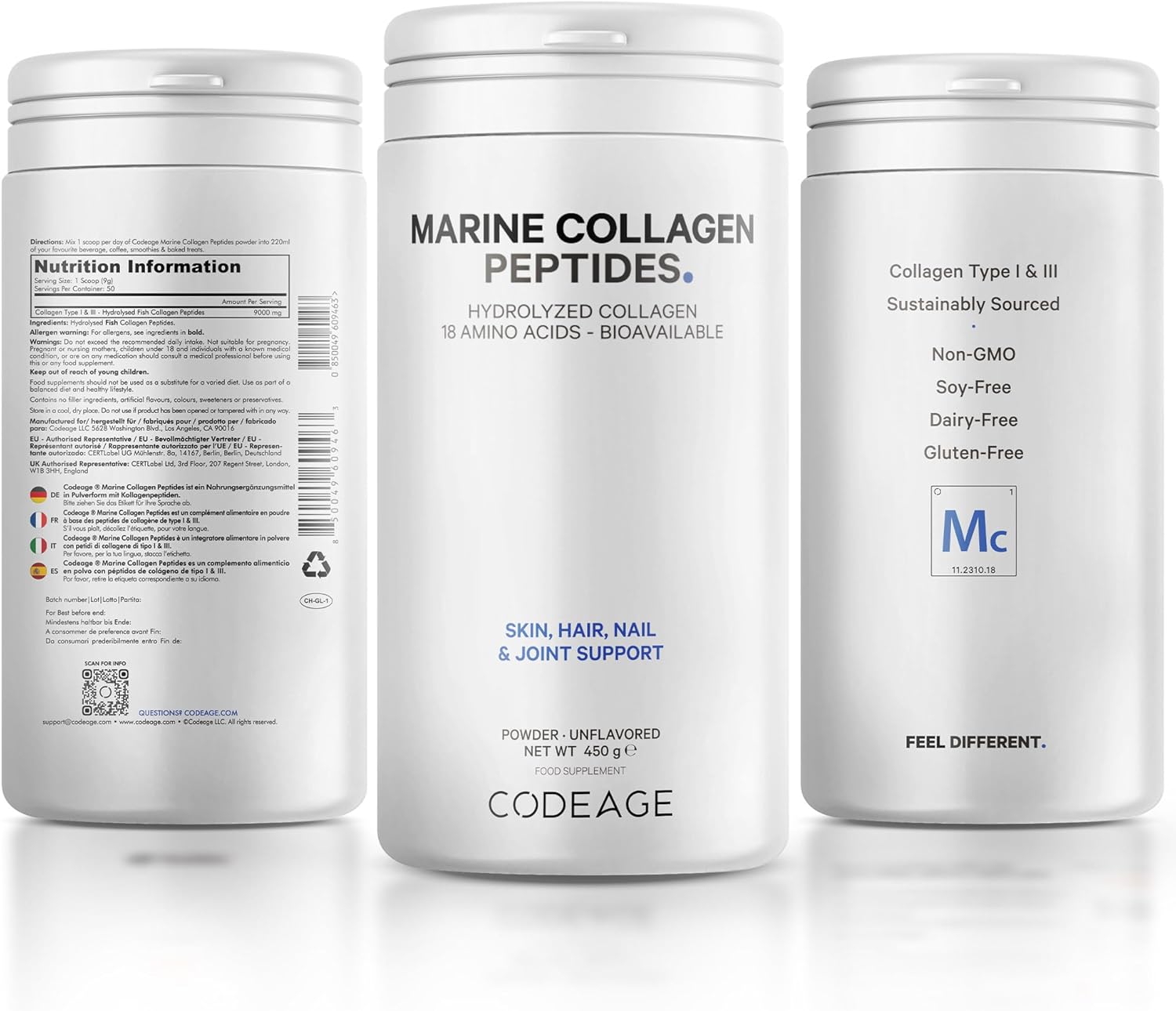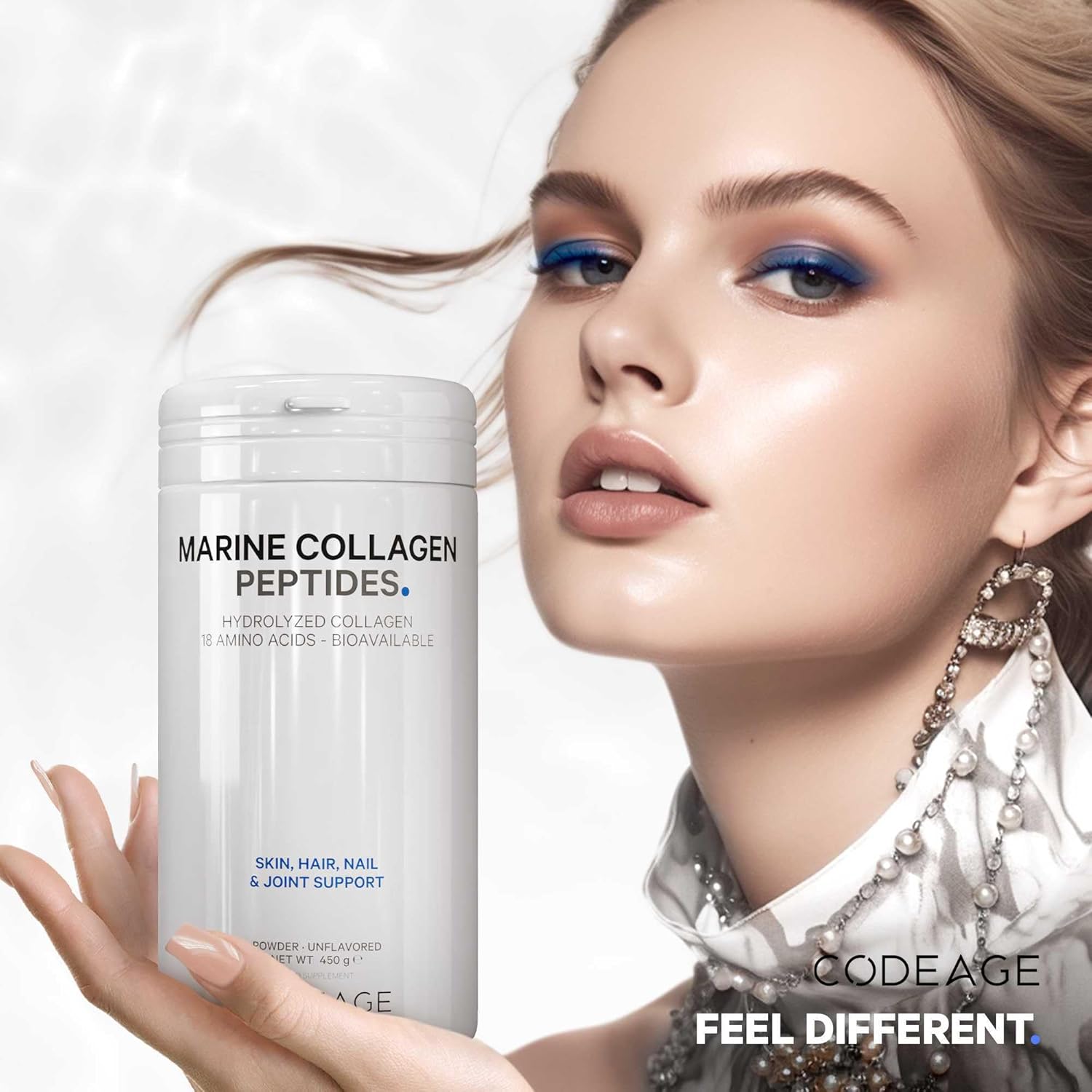 Support radiant skin, strong hair, healthy nails, and joint wellness with Codeage Marine Collagen Powder, a premium hydrolyzed fish collagen...