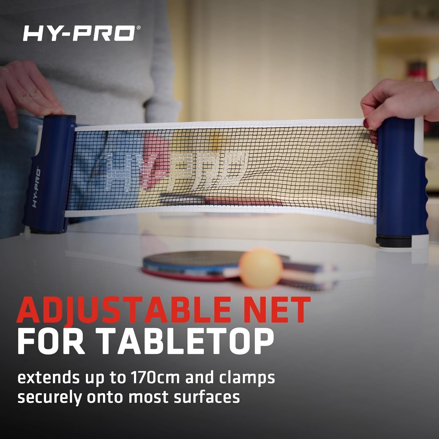 The extendable net stretches up to 170 cm, allowing you to set up a game in seconds—no special table required. Whether you’re hosting family game night, competing with friends, or practicing your skills on the go, Hy-Pro delivers fast, easy, and exciting table tennis anywhere.