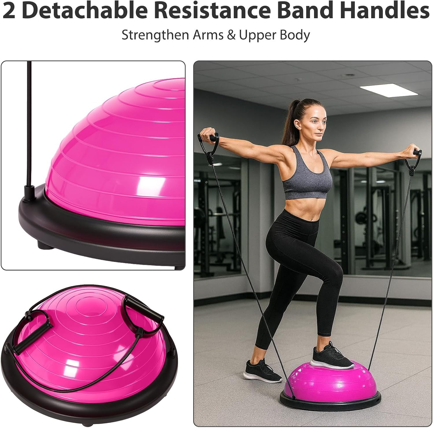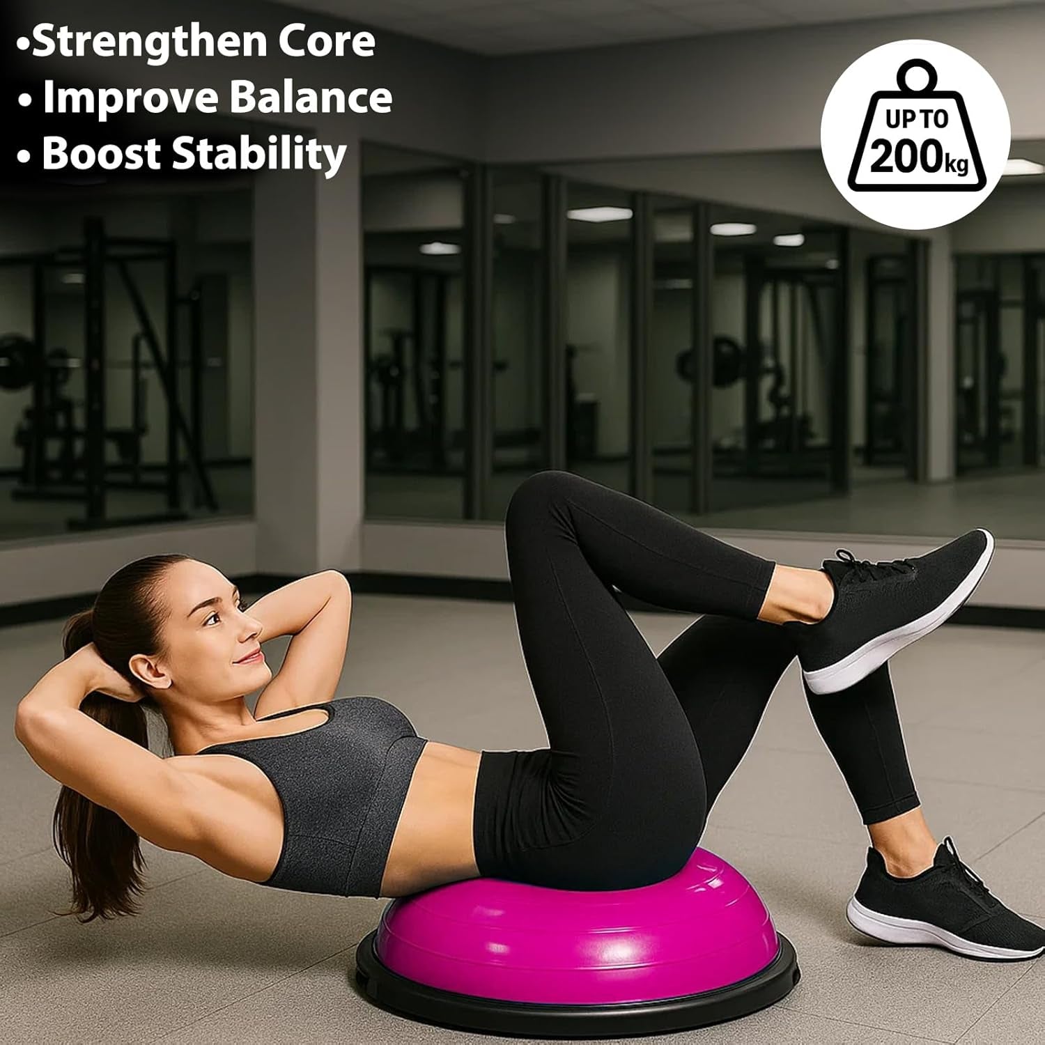 Inflatable Balance Ball Board with Resistance Bands Key Features Inflatable air dome designed to improve balance, stability, and core strength...