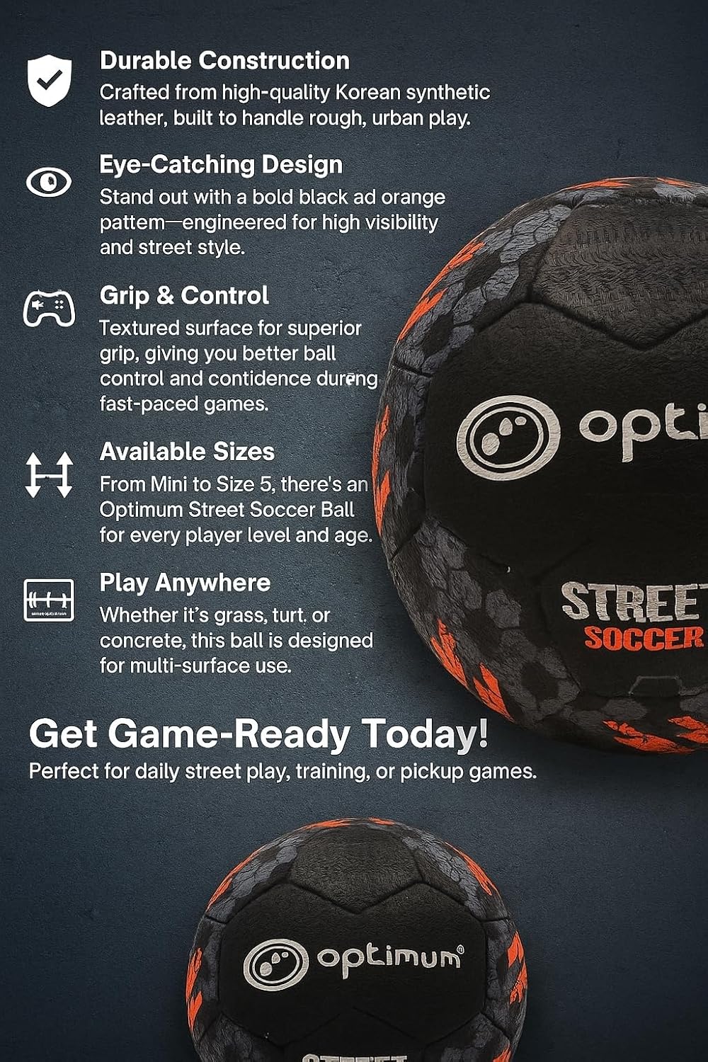 Whether you’re playing in the park, playground, or on the street, the Optimum Street Football offers reliability, durability, and confidence with every kick.
