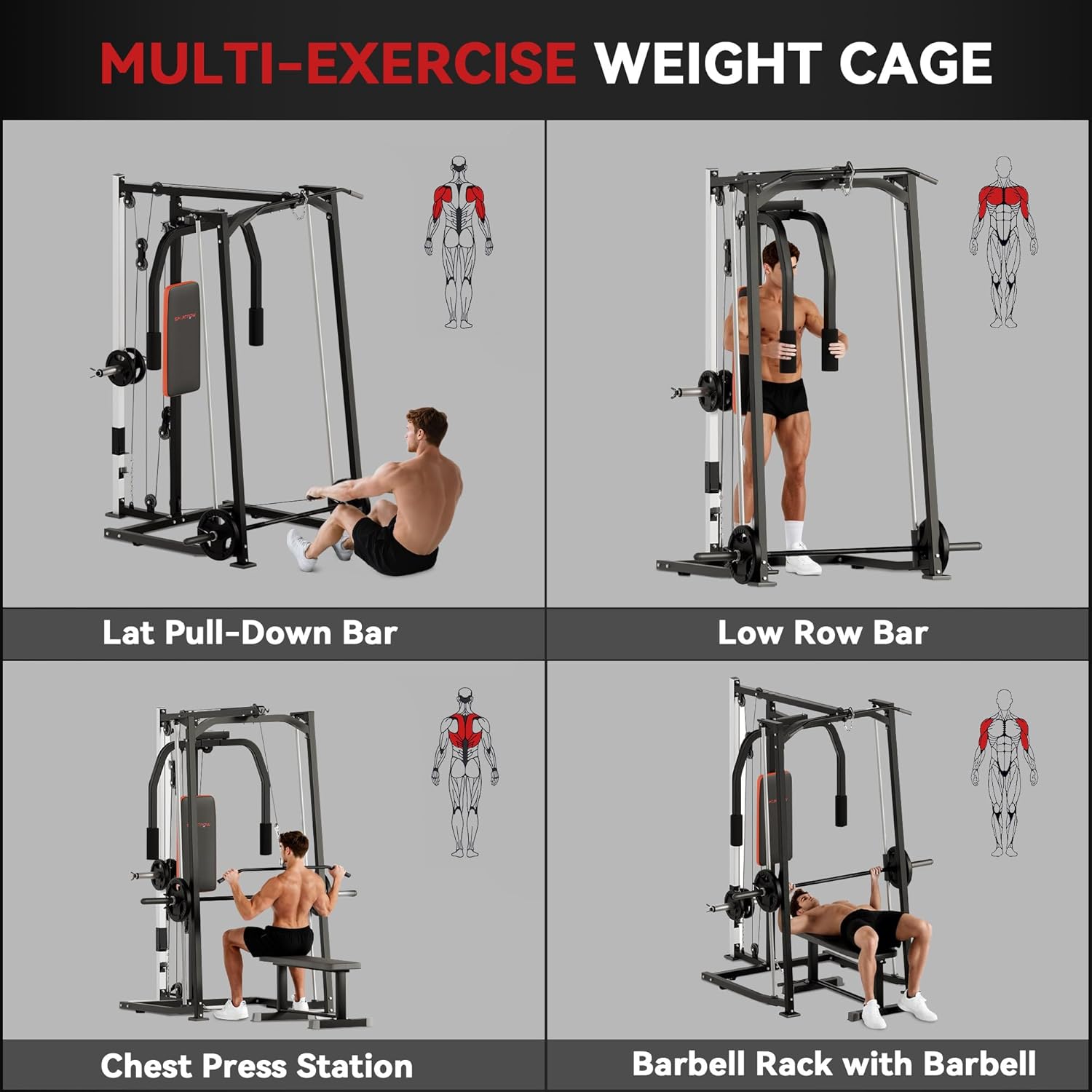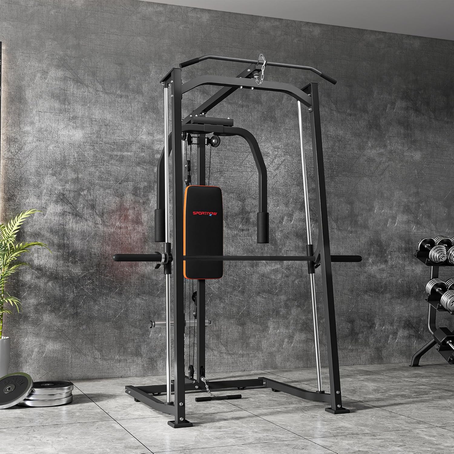 ake your home strength training to the next level with the SPORTNOW 3-In-1 Smith Machine, a multifunctional power cage designed for complete home gym workouts. Combining a dual cable pulley system, chest press station, and 17-level adjustable squat rack, this all-in-one system allows you to perform a wide variety of exercises safely and efficiently.