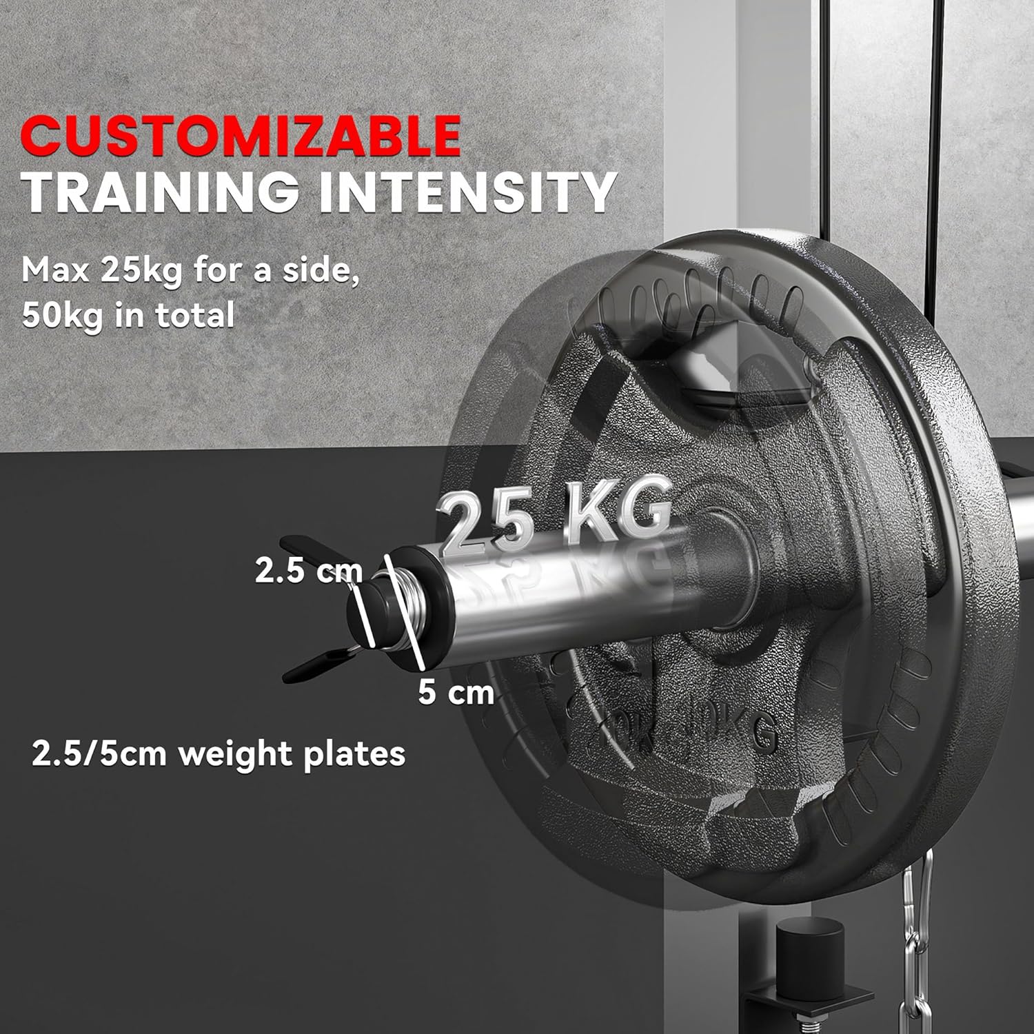 Built for versatility, the included barbell bar and weight plate compatibility let you target chest, shoulders, arms, back, and legs—all in one compact setup. Its sturdy construction ensures stability during heavy lifts, making it ideal for both beginners and advanced lifters looking to maximize home training potential.