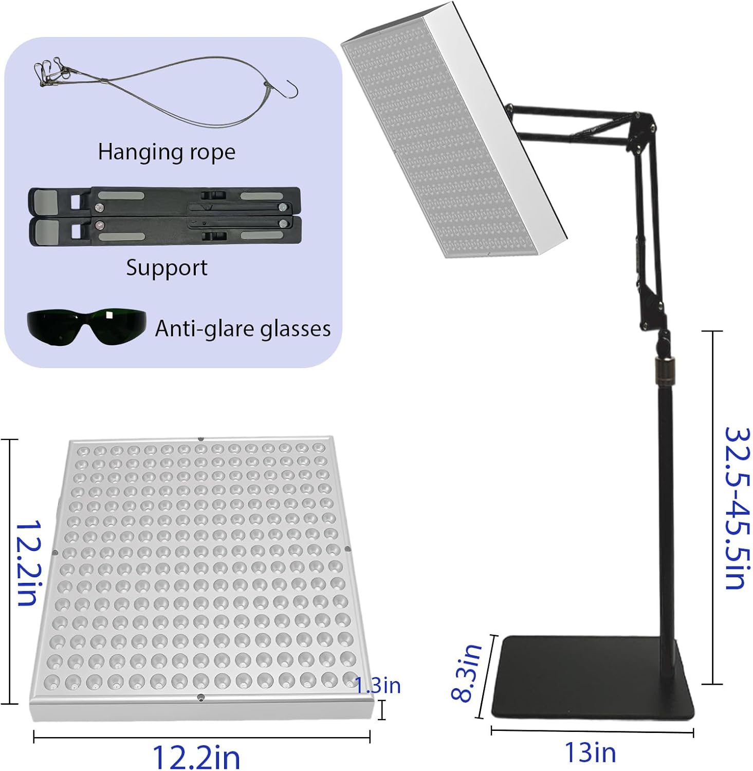 • Adjustable Tripod Stand – Flexible positioning for face or body tanning