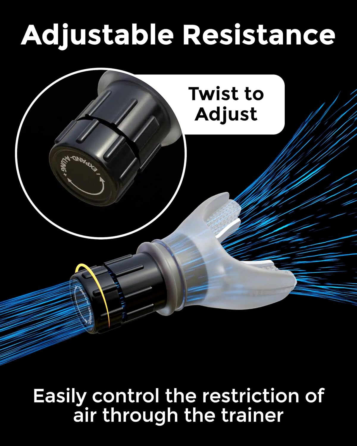 • Adjustable resistance for customized breathing workouts