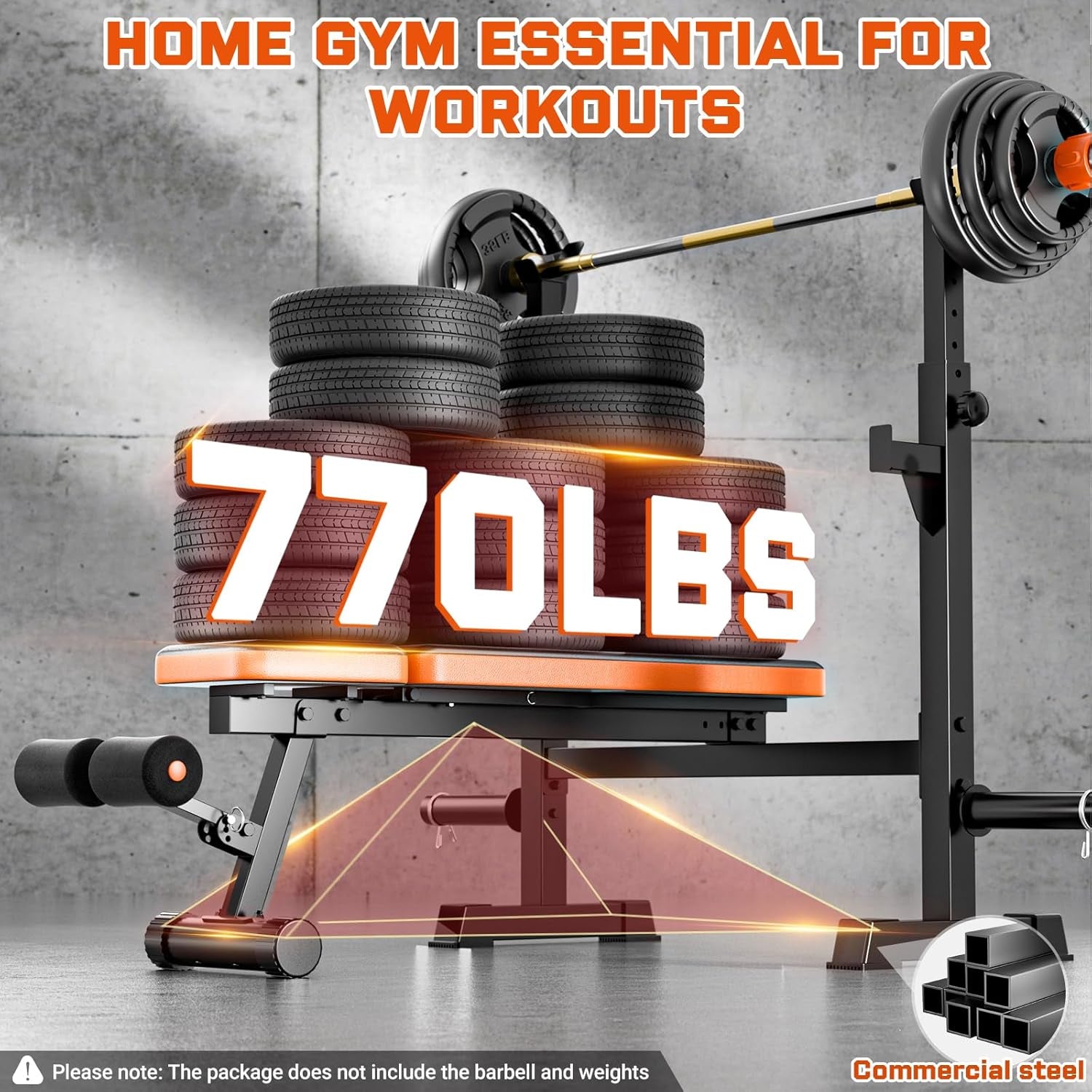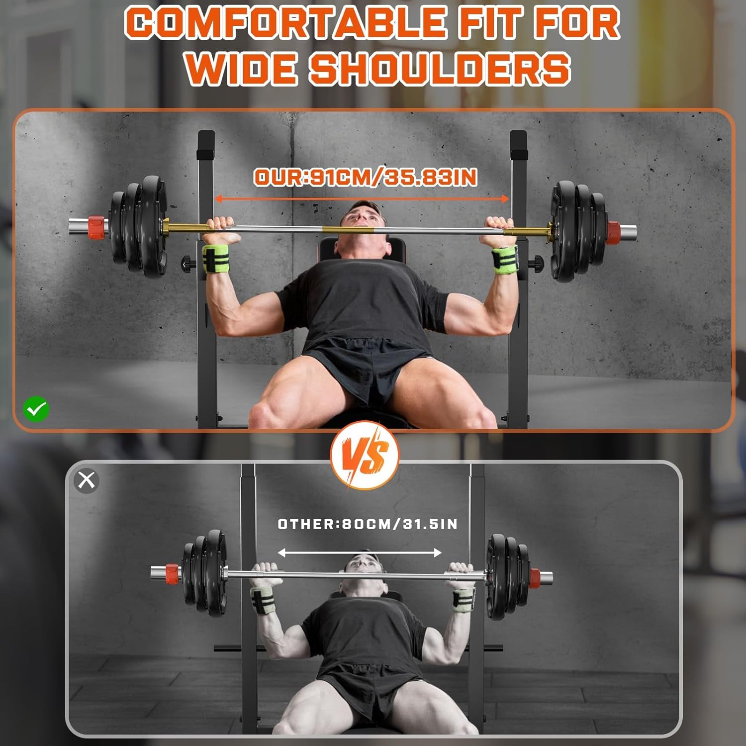 • Versatile design suitable for bench press, squats, and more